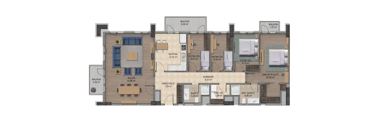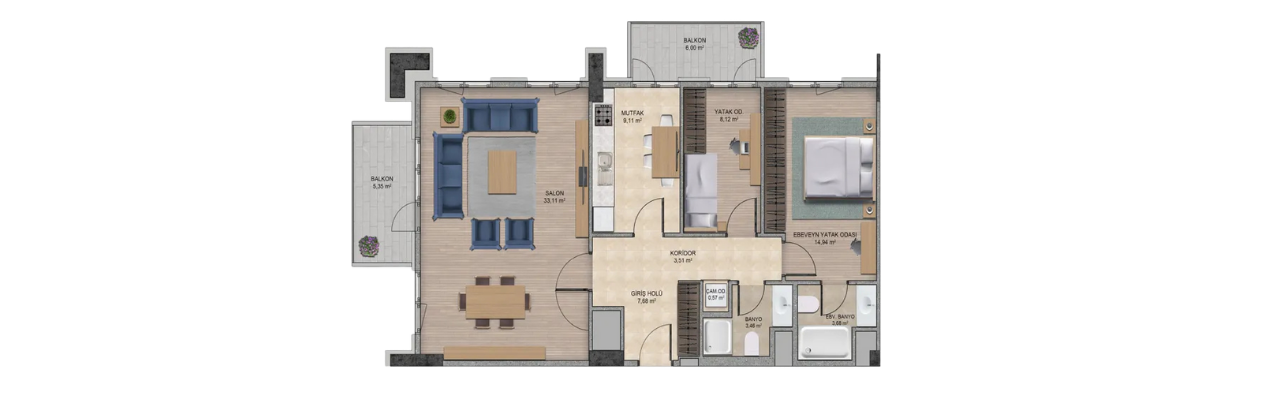 Rising on a vast 26,000 square meter plot in the heart of the Esenyurt district on the European side, this project is defined by its extensive landscapes and rich social life. The development consists of 4 modern buildings containing 600 residential units, offering diverse layouts from 1+1 to 4+1 with